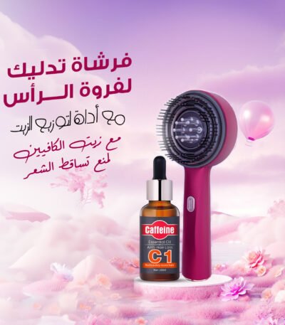 Integrated offer: electric scalp massage brush (Aurora) with oil diffuser and 100% natural caffeine oil – to stimulate hair growth and prevent hair loss, two years warranty.