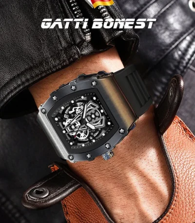 Kimsoun/GATTI BONEST men's mechanical/quartz watch-luxury structural design (bucket shape), artificial sapphire glass (9 degrees of hardness), 50 meters water resistance