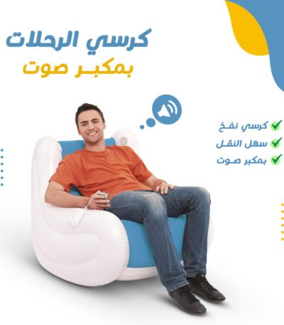 كرسي استرخاء نفخ بمكبر صوت مدمج (Generic) – قابل للطي والتخزين، متين ومقاوم، مثالي للتخييم والسفر والمنزل، سهل النفخ والتفريغ، أبعاد مدمجة، ضمان 7 أيام
