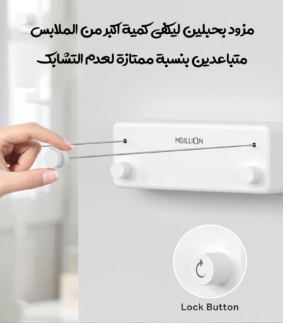 130,00 SAR.Goodbye to the mess of permanent clotheslines! With Double retractable DLC clothesline (4.2 m)- You can effectively dry your clothes and save extra space. It is characterized by Double ropes For Drying a larger amount at the same time, And endures solidly Up to 20 kg, Do not be afraid of falling clothes. Its design is stylish And resistant to rust and water, and its small size Practical for tight spaces without clutter. All this comes with Two years warranty من DLC.