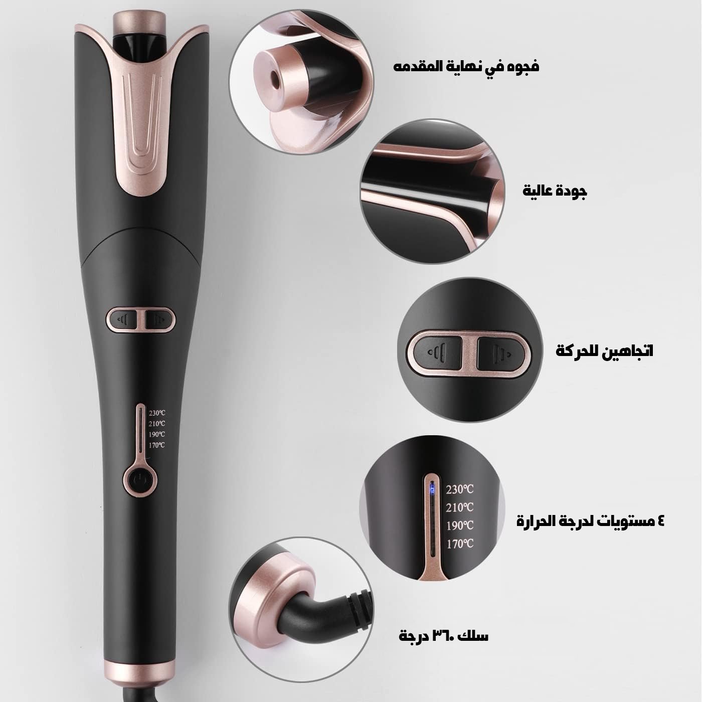 The device has four temperatures suitable for all hair types, ranging from $300^\circ\text{F} {to$ 450^\circ\text {F}$. It includes three different timers to choose from. It heats up quickly and shortens the styling time, its power is approximately 25-45 Watts. To ensure safety, it has an automatic shut-off feature. Supports universal voltage (100-240V), which makes it ideal for travel. Light and easy to use even if it's the first time. The product is covered by a two-year warranty from the Aurora warranty agent, and comes in a random color.