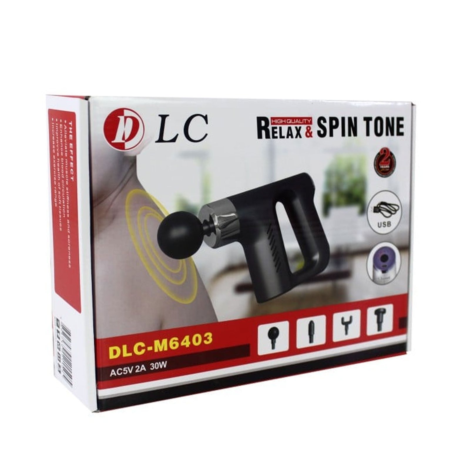 1 DLC-M6403 massage gun device, 4 different massage heads, 1 USB charging cord, and 1 usage manual.