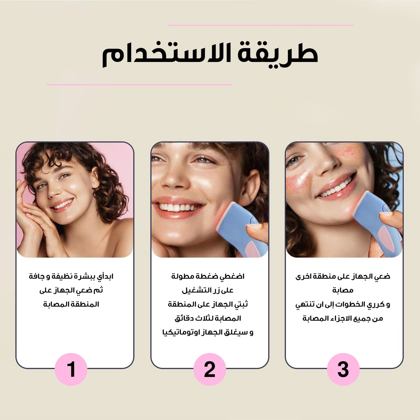 Clean the face from moisture and residue before use. Place the device over the affected area (the pill). Press the button for one second to turn it on. Install the device for 3 minutes as it automatically turns off on its own. Move it to another place and repeat the same steps.