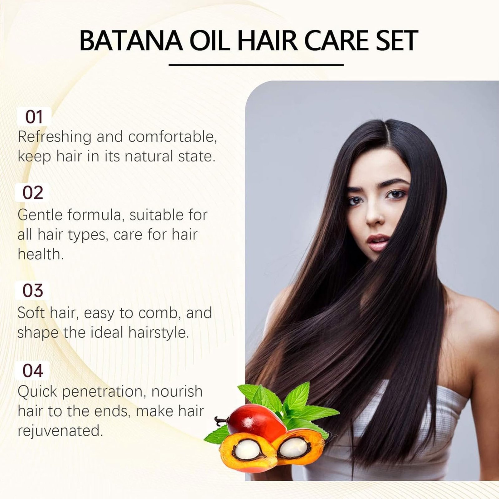 The offer contains a shampoo with Patana oil, a balm with Patana oil, a hair mask with Patana oil, and a hair oil for care and nutrition.