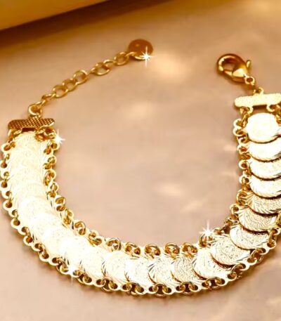 عرض 2 سوار سلسلة عملات أفريقية مطلي بالذهب – إكسسوار نسائي عصري، مصنوع من النحاس المتين، تصميم دائري ناعم، خفيف الوزن ومناسب للمناسبات الرسمية والكاجوال