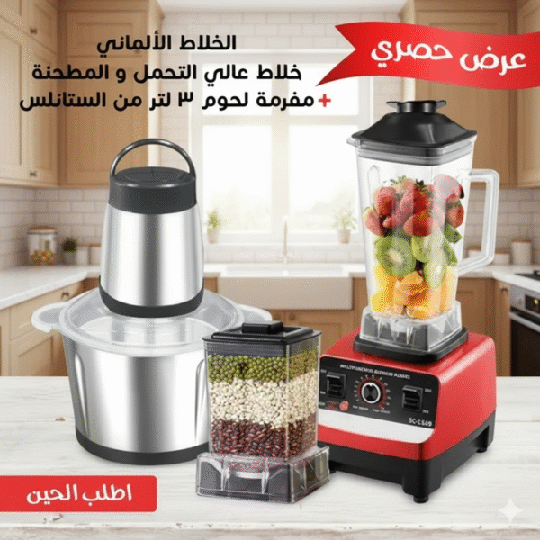 الخلاط الألماني الأصلي مع مطحنة + مفرمة اللحوم المتينة 3 لتر بضمان 6 شهور
