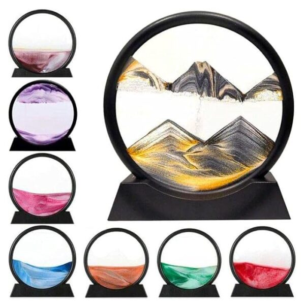 لوحة فن الرمل المتحرك ثلاثية الأبعاد (Sand Art) – ديكور مكتبي زجاجي دوار للاسترخاء والتأمل | منظر طبيعي متغير