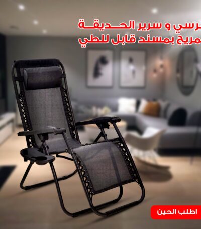 حوّل حديقتك، شرفتك، أو أي مكان خارجي إلى واحة استرخاء مثالية! كرسي وسرير الحديقة القابل للطي بتصميم “زيرو جرافتي” (Zero Gravity) يريحك ويخليك تحس بخفة تامة. يتميز بمرونة عالية، حيث تقدر تمدده من 0 إلى 170 درجة، مع قفل يثبت الوضعية اللي تبيها. لا تقلق بشأن المتانة؛ فهو يتحمّل وزن ثقيل يوصل 158.75 كيلو. كما أنه خفيف (7.7 كيلو)، وينطوي بسهولة، مما يجعله مريحاً للجلسات الطويلة بالحوش أو البحر أو الطلعات.