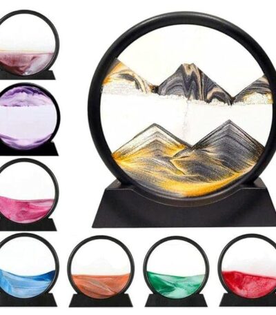 لوحة فن الرمل المتحرك ثلاثية الأبعاد (Sand Art) – ديكور مكتبي زجاجي دوار للاسترخاء والتأمل | منظر طبيعي متغير