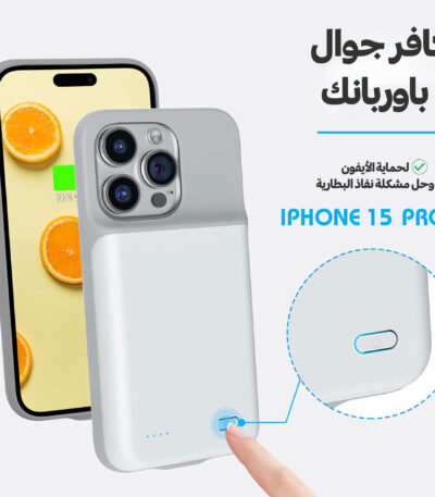 كفر باور بنك آيفون 15 Pro Max (6.7 إنش) – سعة 6800mAh، شحن لاسلكي مدمج، حماية من الصدمات، شاشة LED، تصميم نحيف