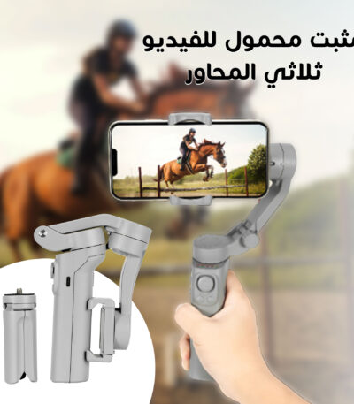 مانع اهتزاز (Gimbal) ثلاثي المحاور للجوال – تتبع تلقائي، بطارية 6 ساعات، مصباح إضاءة مدمج، يدعم التصوير البطيء والبانورامي، احترافي للفلوجات