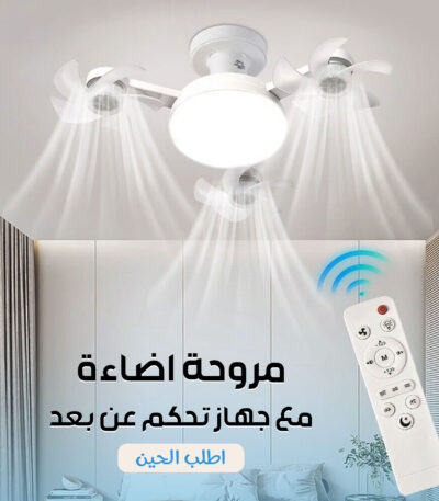مروحة سقف درون ذكية جينيريك 6 في 1 (18 واط) – إنارة LED بثلاث ألوان (3000K-6500K)، 3 سرعات، مؤقت، تحكم بالريموت، تثبيت E27، خفيفة الوزن، ضمان 7 أيام