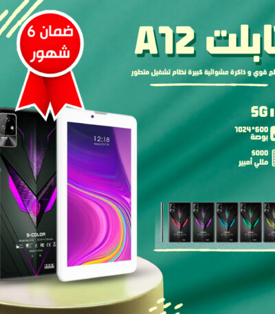 تابلت S-Color A12 بشاشة 7 بوصة – 6GB رام و 128GB تخزين – بطارية 5000mAh – حزمة هدايا كاملة وضمان 6 أشهر