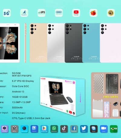 تابلت U966 بشاشة 8 بوصة عاكسة للشمس – يدعم 5G – ذاكرة 128GB و 6GB رام – حزمة هدايا وضمان 6 أشهر