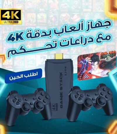 جهاز ألعاب Game Stick Lite بدقة 4K – أكثر من 18500 لعبة كلاسيكية، 2 يد تحكم لاسلكية، يدعم 9 محاكيات (PS1/MAME/GBA)، تخزين 64GB، توصيل HDMI