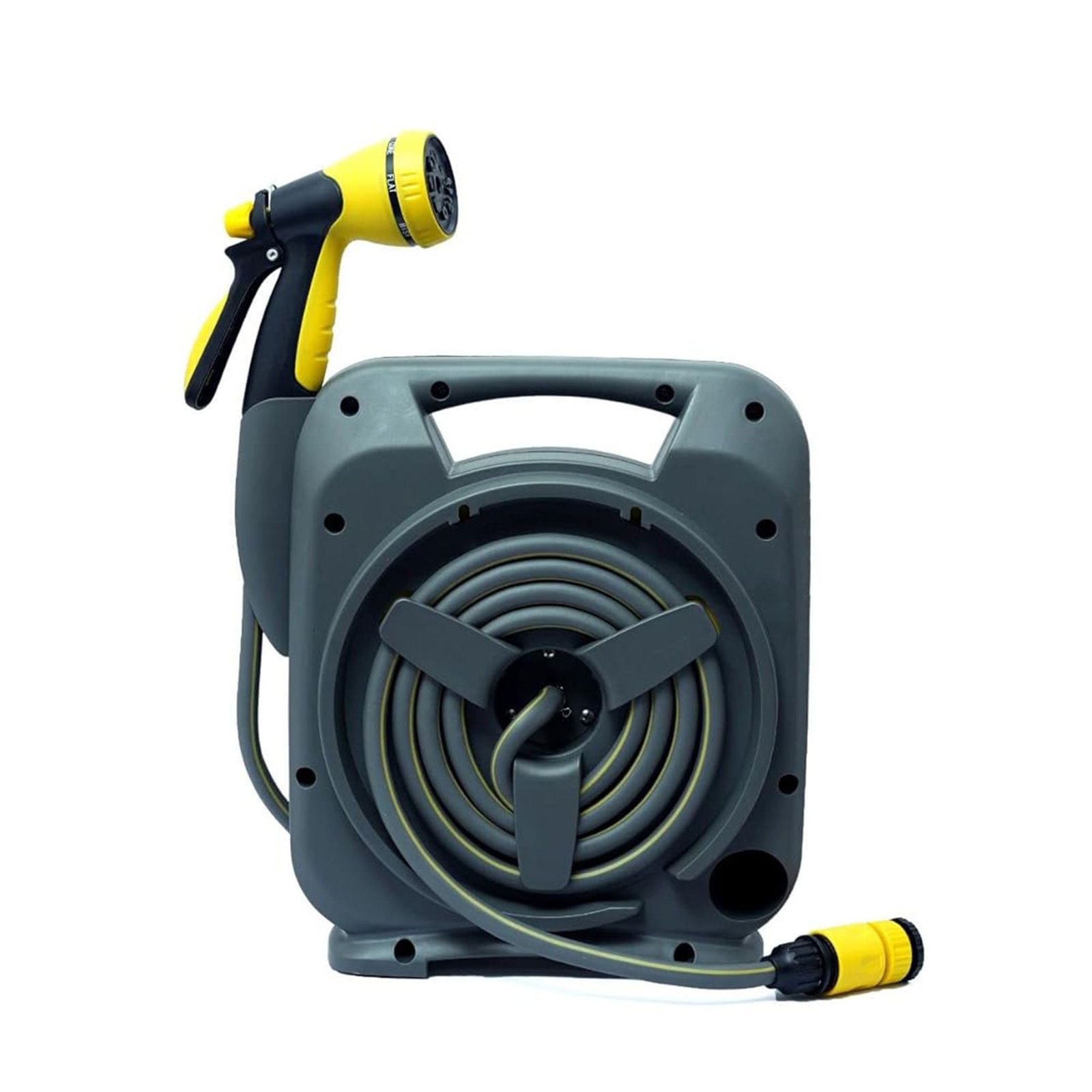 بكرة سهلة اللف: لف الخرطوم سهل جداً بمجرد تدوير المقبض، بفضل تصميمه الذكي الذي يمنع التشابك ويجعل سحبه وتخزينه بدون تعب.