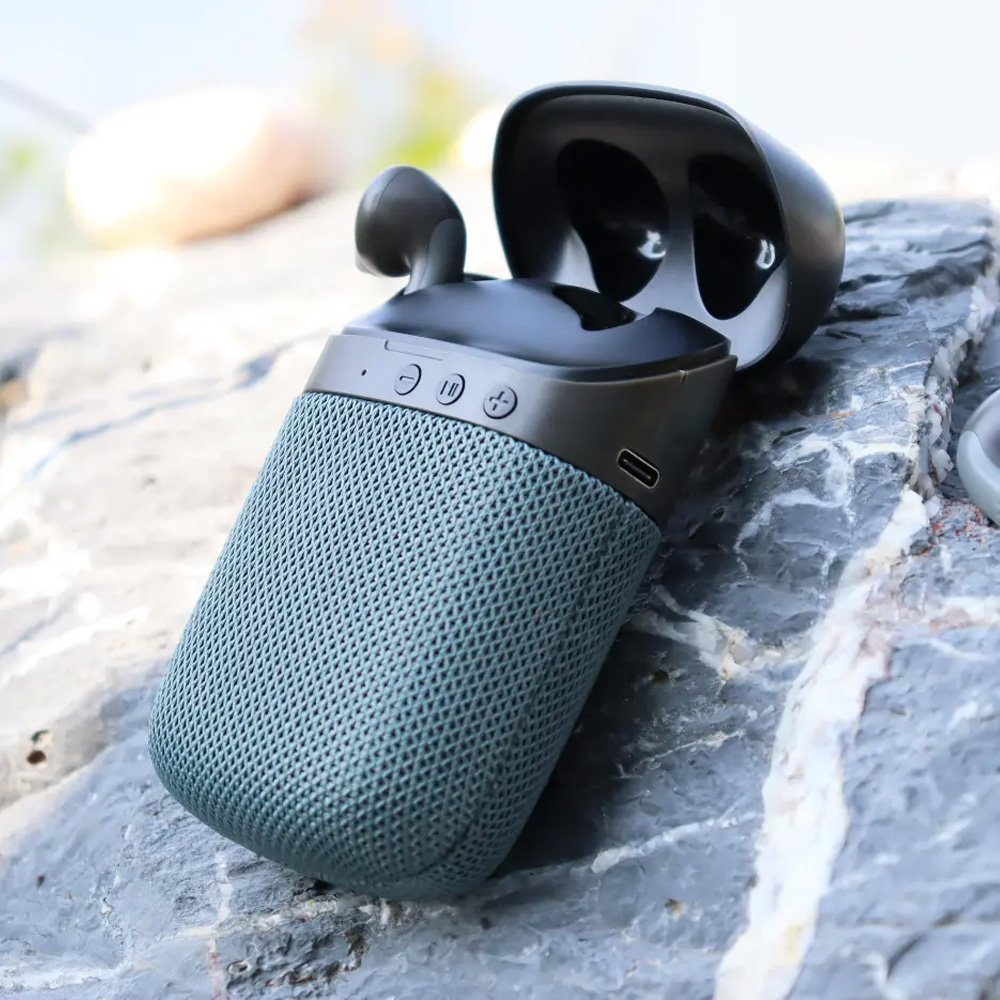 اطلب جهاز سبيكر و ايربودز 2 في 1 الآن واستمتع بتجربة صوتية متكاملة ومحمولة!