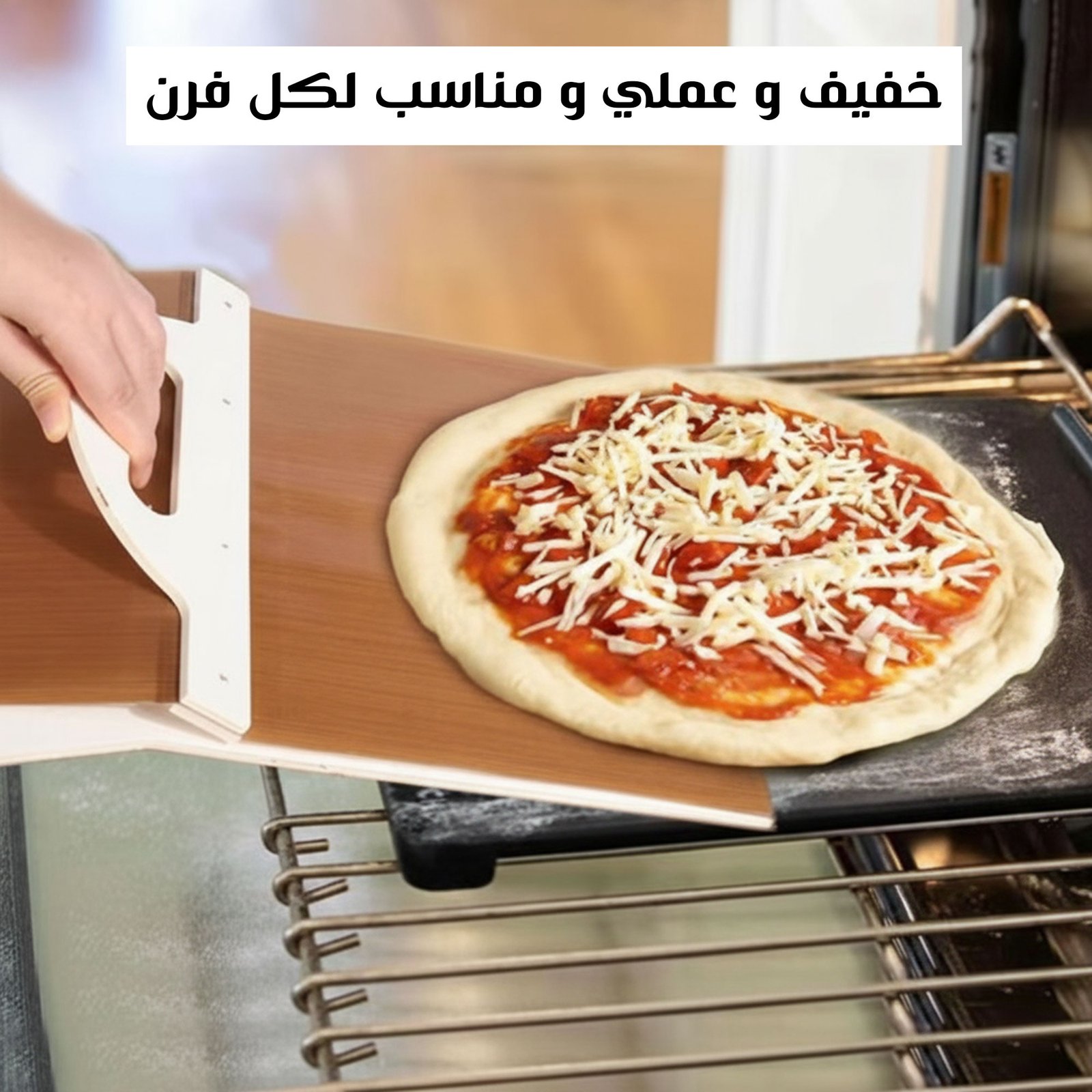 خاصية الانزلاق: التصميم المنزلق يضمن رفع البيتزا بدون ما تلتصق أو تتفتت، مما يجعله مثالياً لنقلها من الفرن.