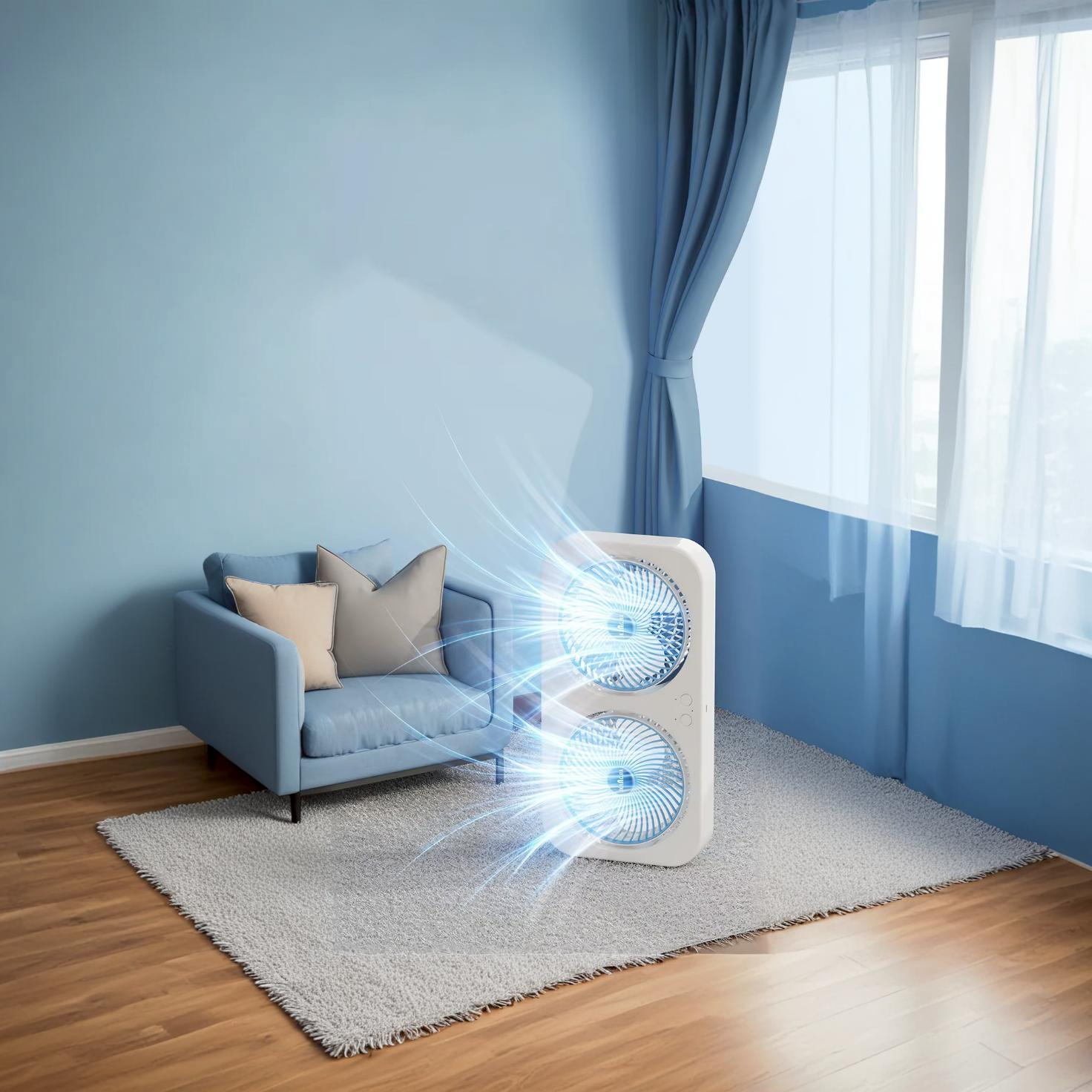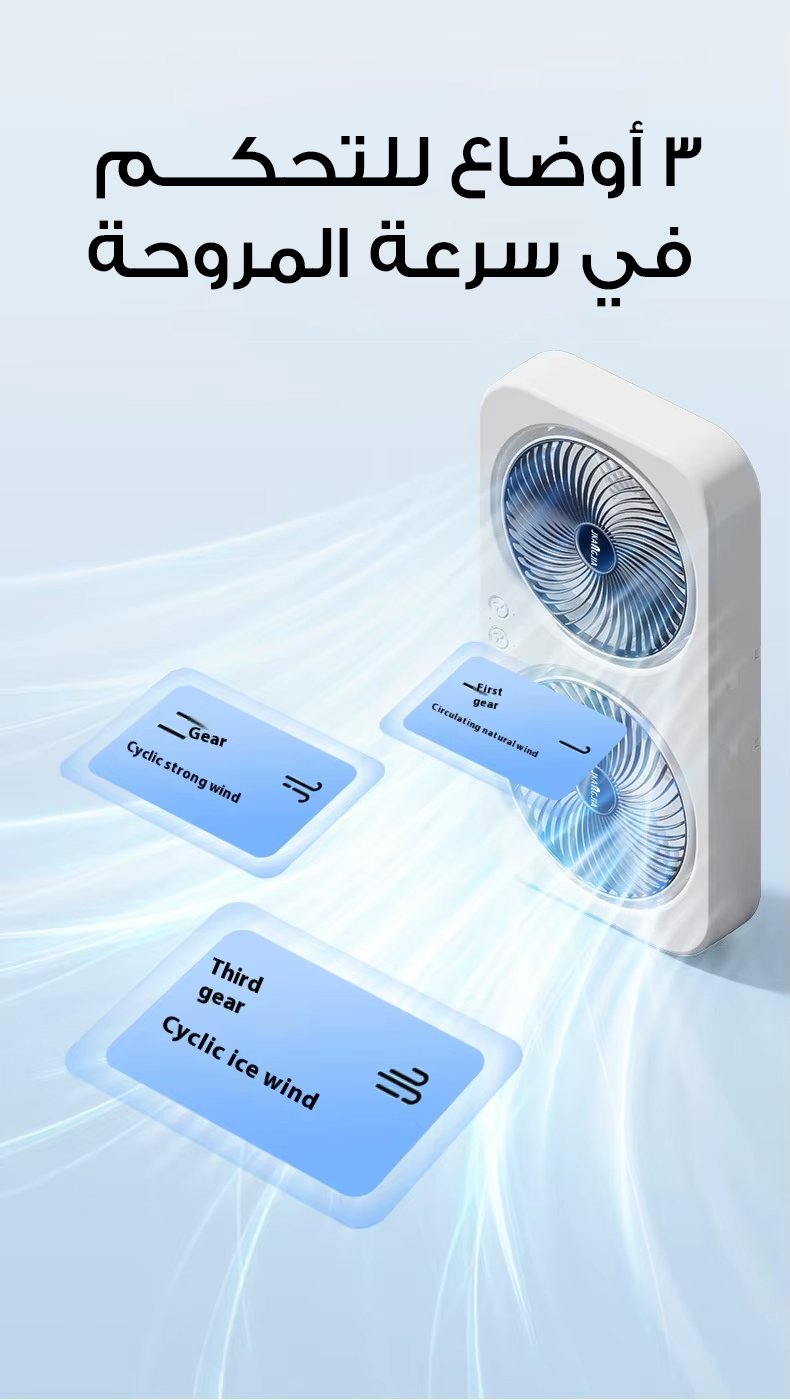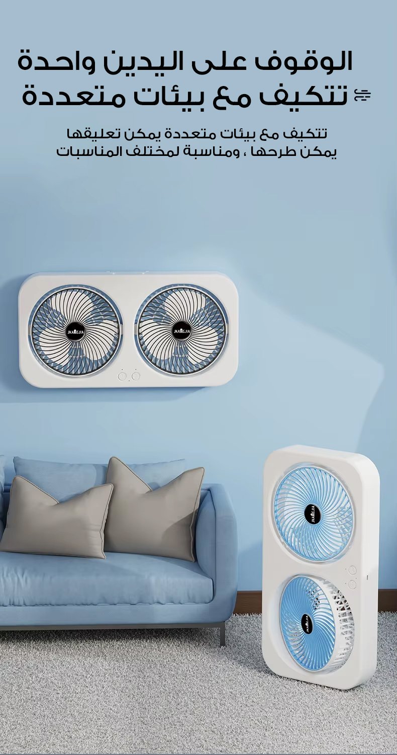 اطلب المروحة المزدوجة الحديثة الآن واستمتع ببرودة فورية وهواء منعش في كل مكان بضمان 14 يوم!