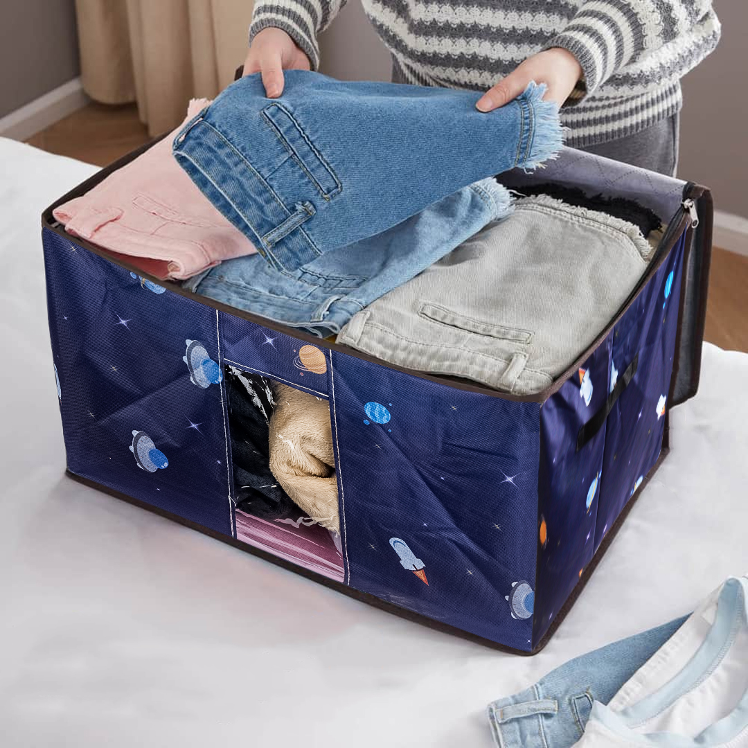 متعددة الاستخدام: مثالية لتخزين الملابس الموسمية، أغطية السرير، الألعاب، والأدوات المنزلية الأخرى، بالإضافة إلى استخدامها كـ حقيبة سفر متميزة.