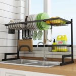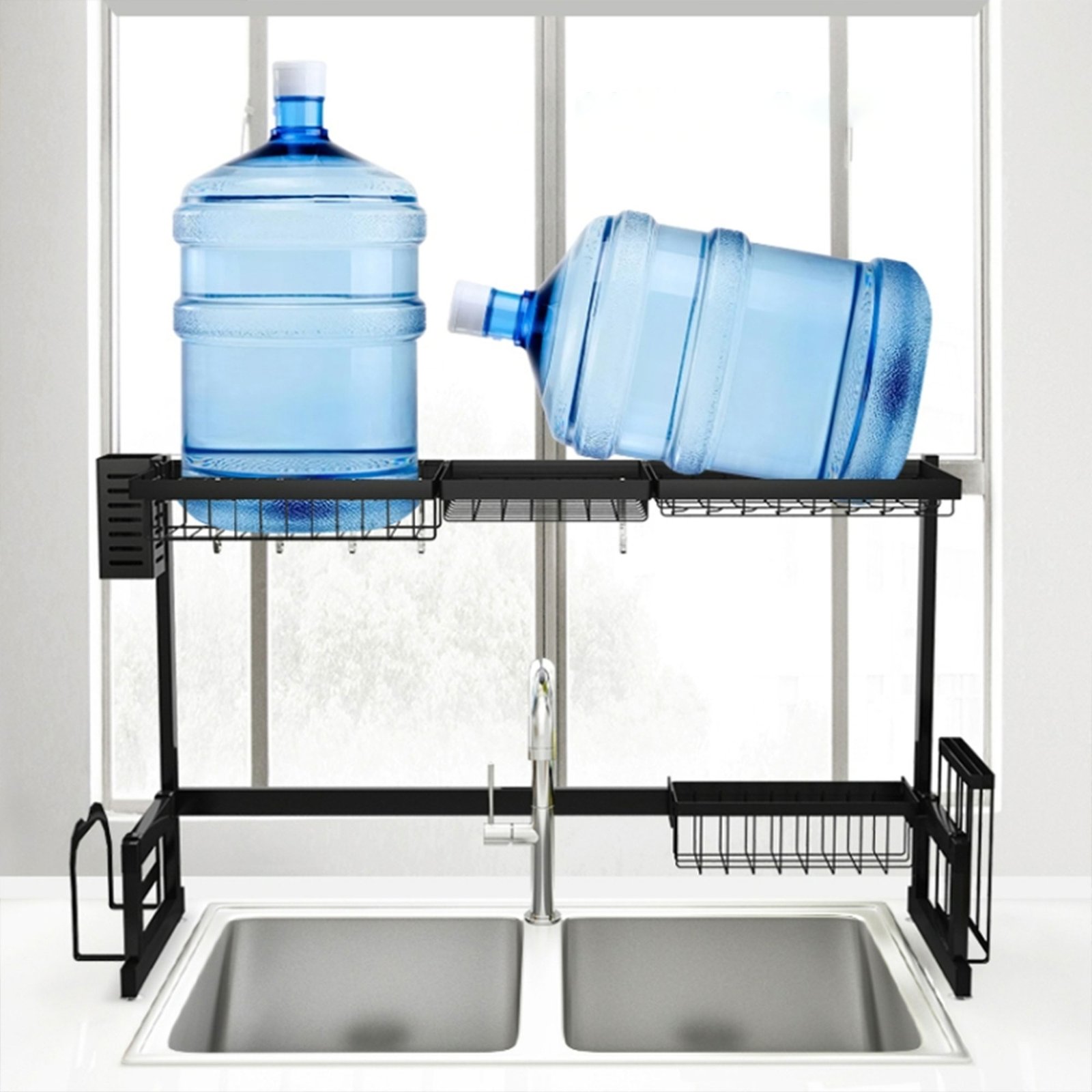 منظم ومجفف الصحون فوق الحوض – فولاذ مقاوم للصدأ أسود | قابل لتعديل المقاس ويحتوي على رفوف تخزين متكاملة