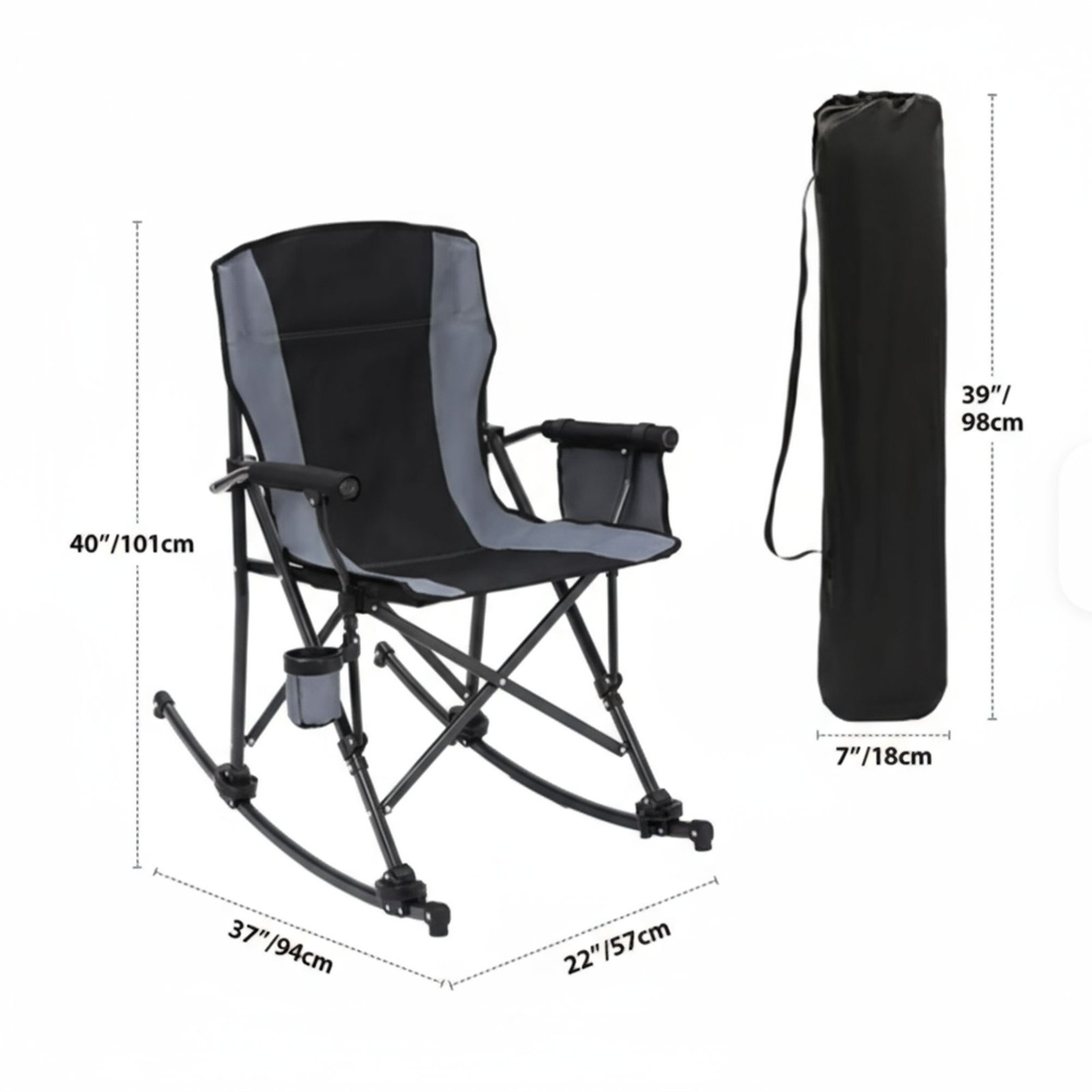 | كرسي تخييم هزاز | جينريك / 7 أيام | قماش أوكسفورد + إطار حديد | $60 \times 60 \times 95 \text{ سم}$ | الوزن $6 \text{ كجم}$، يتحول لهزاز |