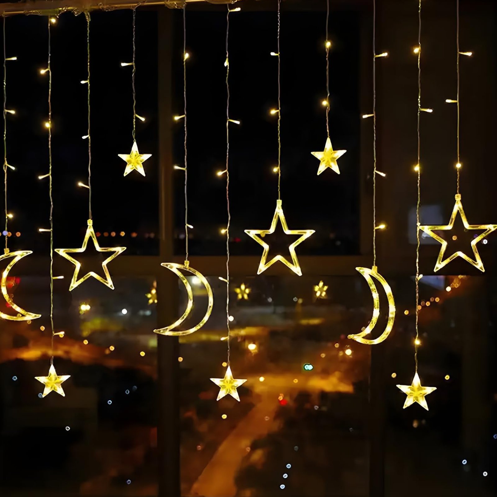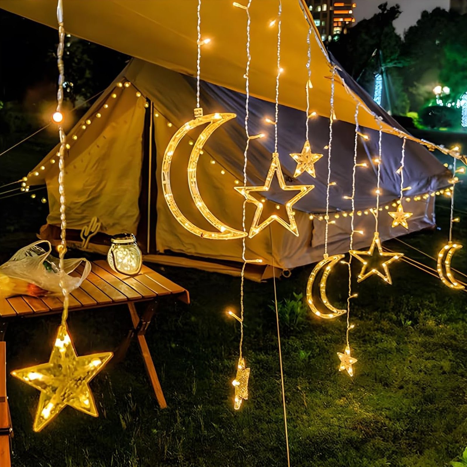 يقدم متجر crew fiften أضواء زينة رمضان الفريدة التي تجمع بين التصميم الجمالي والأمان العالي. تضفي هذه السلسلة المكونة من نجوم وأقمار مظهراً مميزاً وجميلاً بفضل إضاءة 138 لمبة ليد باللون الأبيض الدافئ. تتميز الإضاءة بمرونة عالية في التحكم، حيث توفر 8 أوضاع إضاءة تناسب كافة الأذواق والمزاجات، مع إمكانية التحكم عن بعد عبر جهاز الريموت دون الحاجة للتحرك من مكانك.
